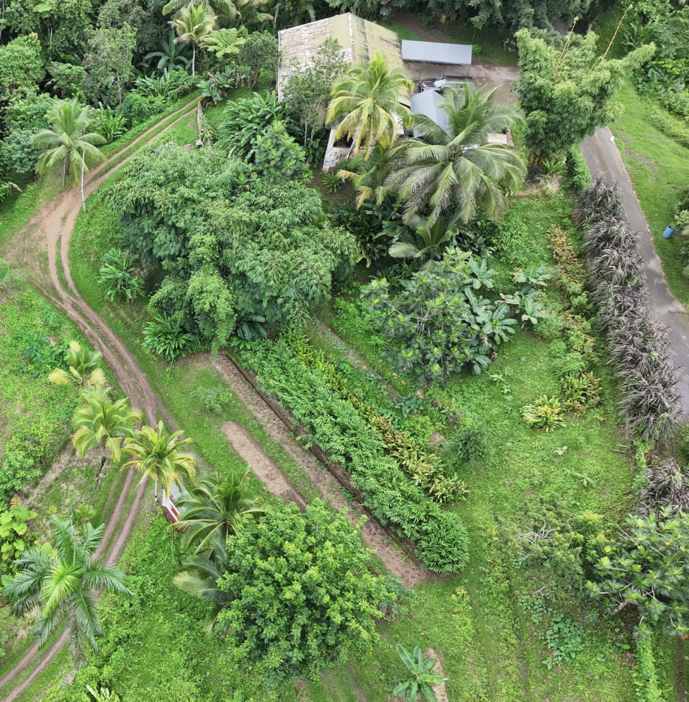 En la finca se cultivan productos como jengibre, cúrcuma, galangal y recao (culantro), todos manejados con técnicas que apoyan la conservación de recursos naturales. También hay árboles frutales, tanto nativos como exóticos, sembrados de manera intercalada, junto con sistemas pensados para aprovechar mejor el agua y evitar la erosión del suelo.