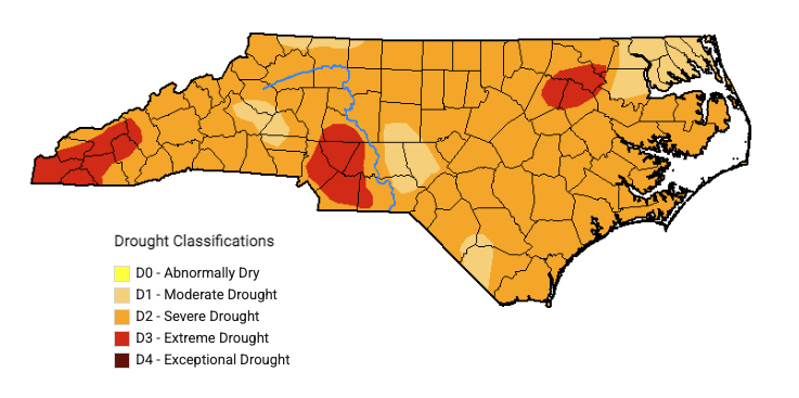 Puedes consultar el mapa en: www.ncdrought.org