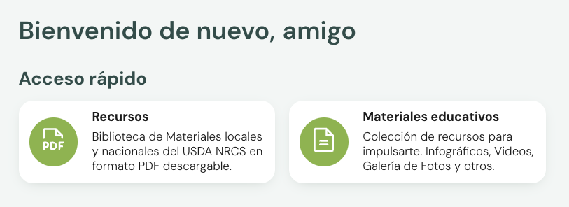 - Sección de Documentos: un espacio con contenido más detallado y estructurado que puedes usar para profundizar tus conocimientos o consultar datos importantes sobre la producción agrícola.